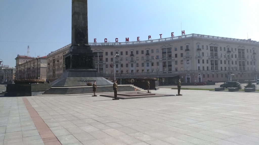 L’ anima della cittá è profondamente sovietica, strade enormi a 8 corsie attraversabili dal pedone solo con sottopassaggi, marciapiedi di una pulizia impeccabile, parchi immensi di cui si vede l inizio ma non la fine. Ogni tanto si nota qualche negozio occidentale con le insegne in cirillico, ma a Minsk posso dire con estrema sicurezza che il capitalismo non ha preso piede come in alcune repubbliche ex sovietiche, anche se Victoria mi dice candidamente che qui la gente ha voglia di europeizzarsi, movimenti e rivolte in stile Maidan sono infatti sempre piu frequenti qui.