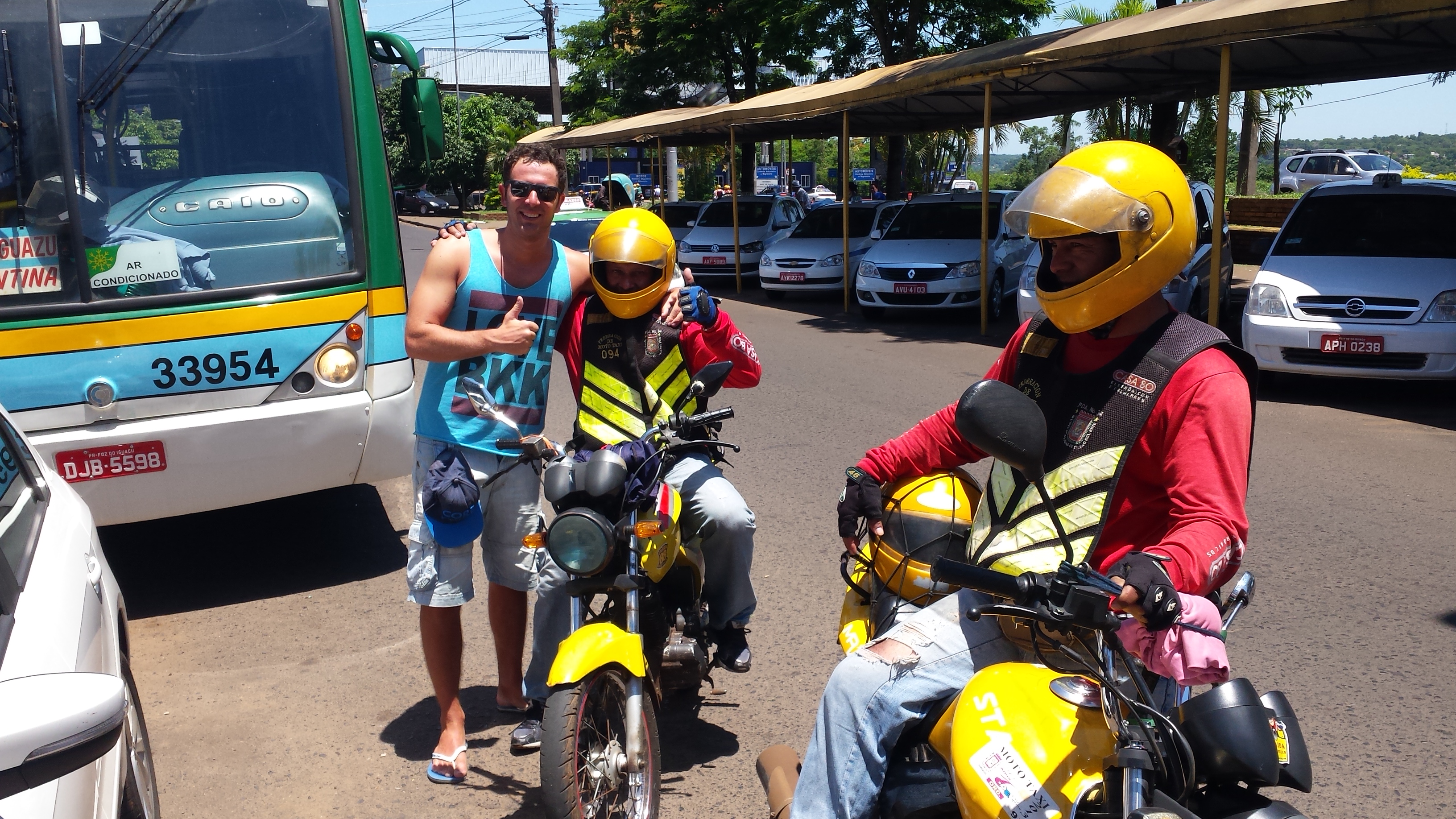 Dopo un viaggio di circa mezz ora eccoci alla dogana, che è proprio come me l aspettavo: Un viavai continuo di persone e enormi strutture con la scritta Shopping in evidenza. Un’ altra cosa che balza all occhio sono gli scooter-taxi, individui con casacca e casco giallo che vi faranno oltrepassare la frontiera con il loro mezzo a due ruote senza nessun tipo di problema, vi ricordo infatti che tra i tre paesi al confine di questo porto franco, Argentina Paraguay e Brasile non ci sono controlli frontalieri