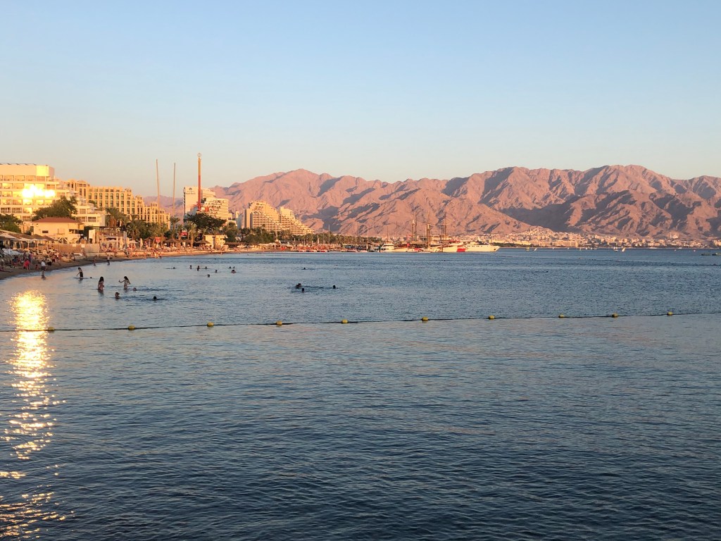 Eilat è un’ ottima base per vedere posti splendidi,come Gerusalemme e il mar morto, raggiungibili con quache ora d auto. Inoltre, è confinante con la città gemella Aqaba, in Giordania, una volta infatti superata la dogana Giordana ci si potrà recare verso una delle meraviglie del mondo, Petra. Eilat gode di ben 10 km di spiaggia, affacciate su un mare molto pulito, che data la salinità vi permetterà di galleggiare baciati dal sole del mar rosso. Tra le migliori spiagge, oltre alla già citata Dolphin reef, da non perdere è Coral beach, una riserva naturale che si adagia per oltre 1200 metri, che non è sicuramente un posto per fare vita da spiaggia perchè c è una sacco da vedere una volta immersi nelle sue splendide acque, ricrodatevi la GoPro! Da Dicembre 2019 tutte le spiagge sono Plastic free, è quindi proibito portare plastica e alluminio, e anche i chioschi limitrofi non la possono usare. Tip che mi ha detto un local dell hotel: “ Andate a vedervi un tramonto a Mosh Beach”, è una spiaggia molto vicino al centro, da lì si vedono le rocce rosse della Giordania baciate dal sole che si riflette sul mare blu, con la luce del tramonto che dà un’ atmosfera particolare.